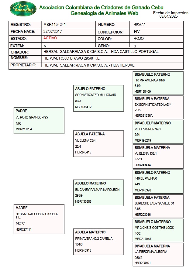 Brahman Rojo Bravo 495/77