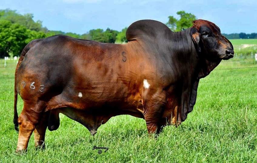 Se originó en el estado de Texas (Estados Unidos) y es el resultado del cruce de razas de origen Hindú Como Nelore, Guzerá, Red Sindi sobre Herdford principalmente.