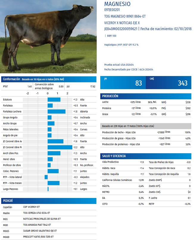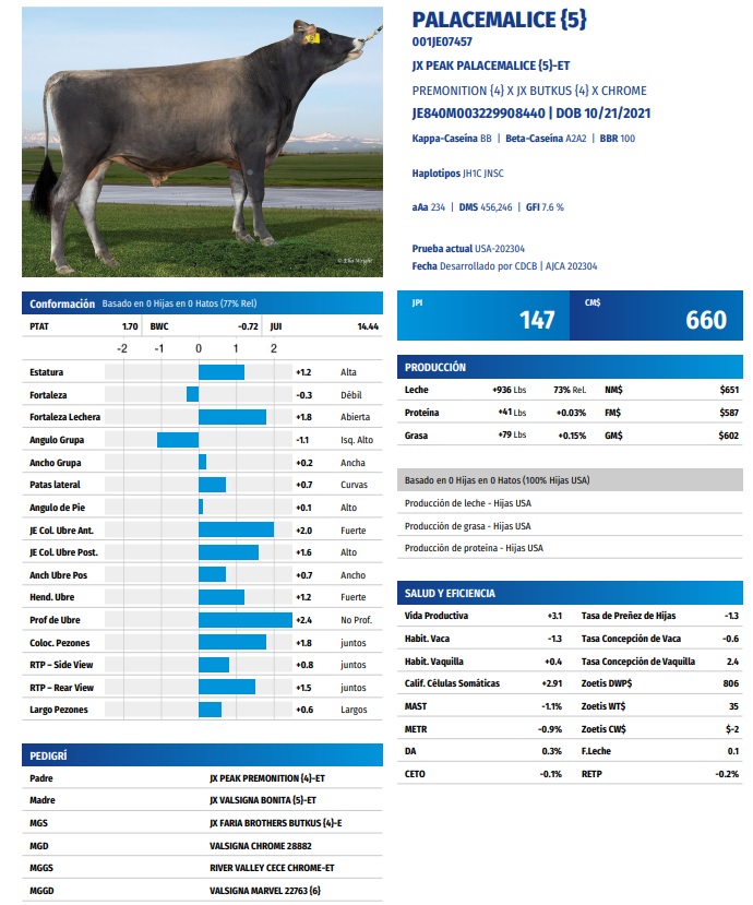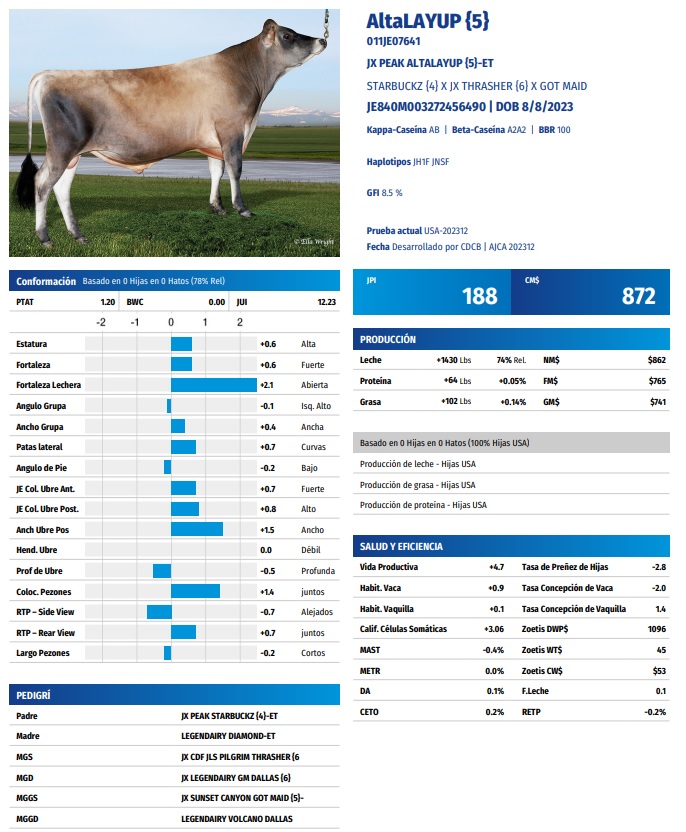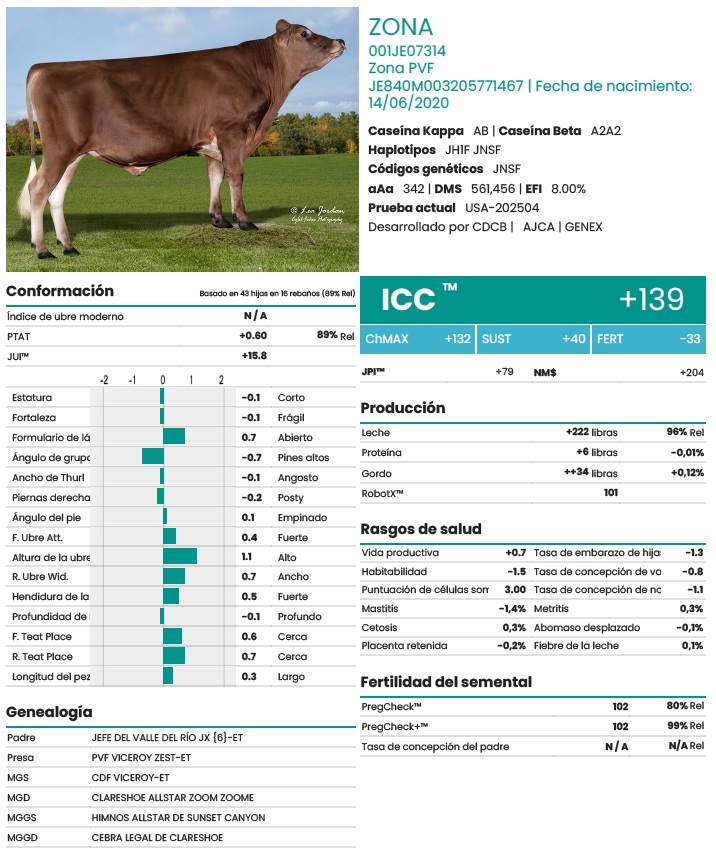 La vaca Jersey llama la atención por su pequeño tamaño y su feminidad. Es la mejor para producir leche en cualquier sitio del mundo, en condiciones especiales inclusive como la del trópico. Además de esto, sus formas angulosas y la perfección de sus rasgos indican su alta eficiencia transformando el alimento en leche.